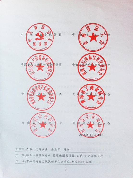 由省委統(tǒng)戰(zhàn)部、省總工會等8家單位聯(lián)合組織開展的"青海省優(yōu)秀企業(yè)、企業(yè)家"評選表彰活動(dòng),經(jīng)過多重、嚴(yán)格評審,青海省物產(chǎn)集團(tuán)總公司榮獲"青海省第七屆優(yōu)秀企業(yè)"稱號。集團(tuán)及所屬各公司將繼續(xù)發(fā)揚(yáng)成績、再接再厲,進(jìn)一步發(fā)揚(yáng)改革創(chuàng)新精神,不斷開拓市場,攻堅(jiān)克難、腳踏實(shí)地、真抓實(shí)干,為實(shí)現(xiàn)物產(chǎn)集團(tuán)科學(xué)穩(wěn)健發(fā)展做出新貢獻(xiàn)。