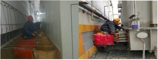 今年,對(duì)動(dòng)力供電系統(tǒng)的濾油和檢修自2016年11月11日開(kāi)始至2016年12月14日結(jié)束,歷時(shí)34天,在車間負(fù)責(zé)人的帶領(lǐng)下,運(yùn)行各班組按照要求統(tǒng)一協(xié)作,以飽滿的工作熱情與低溫天氣和各種困難作斗爭(zhēng),將工作重心圍繞在機(jī)組濾油和供電系統(tǒng)全面檢修上,他們有條不紊對(duì)計(jì)劃安排的整流柜銅母線螺栓、一次高壓開(kāi)關(guān)和刀閘的瓷瓶、保護(hù)二次系統(tǒng)的端子排、控制柜進(jìn)行全面清掃及螺絲緊固,對(duì)變壓器進(jìn)行清洗,同時(shí)加強(qiáng)設(shè)備巡視,對(duì)濾波系統(tǒng)檢查出的刀閘操作機(jī)構(gòu)嚴(yán)重銹蝕,銅鋁過(guò)渡連接板開(kāi)裂等進(jìn)行了及時(shí)處理,認(rèn)真進(jìn)行消缺,保證了供電安全平穩(wěn)。