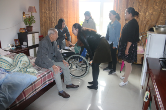 互動游戲結(jié)束后,志愿者們參觀老人們的居所,并陪伴在老人們身邊說著貼心的話。一對結(jié)婚60多年的老人,始終形影不離、相互扶持,相濡以沫。老奶奶激動的對志愿者說:"你們能來看望我們,噓寒問暖,使我們感到非常親切。"老年公寓負責(zé)人說:"你們的到來使老年公寓熱鬧起來,為老人們送來了歡樂和溫馨"。