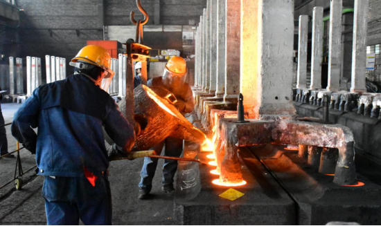鏡頭一:陽極組裝車間"磷生鐵澆筑"比賽現(xiàn)場,參賽選手在指揮員的指令下,天車工密切配合,將赤紅的磷鐵水均勻澆筑在炭碗內(nèi)側(cè),整個(gè)過程"有條不紊、一氣呵成"。