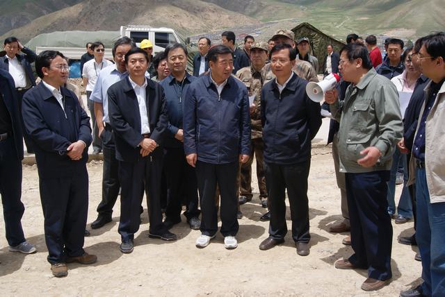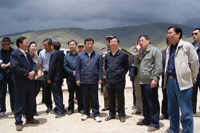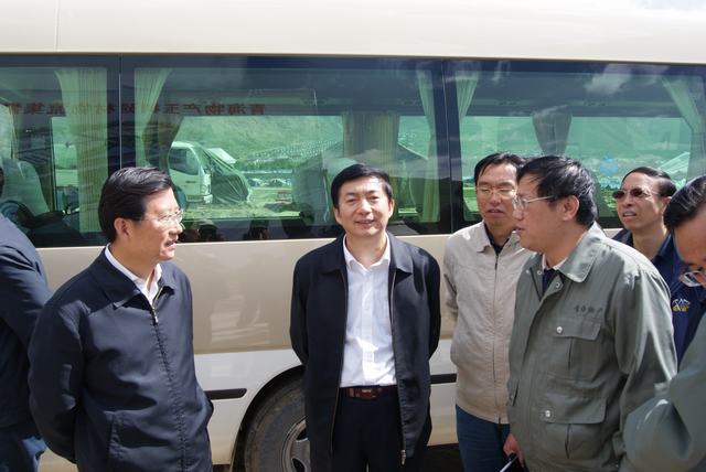 6月19日,中共中央政治局委員、國(guó)務(wù)院副總理、國(guó)務(wù)院抗震救災(zāi)總指揮部總指揮回良玉率領(lǐng)相關(guān)部委領(lǐng)導(dǎo),在青海省委書(shū)記強(qiáng)衛(wèi)、省長(zhǎng)駱惠寧、副省長(zhǎng)馬順青的陪同下,來(lái)到正在晝夜施工建設(shè)的青海物產(chǎn)玉樹(shù)建材物流集散中心,視察災(zāi)后重建物資儲(chǔ)備情況和集散中心工程建設(shè)情況。集團(tuán)總經(jīng)理王玉輝向中央領(lǐng)導(dǎo)和省領(lǐng)導(dǎo)詳細(xì)匯報(bào)了建材物流集散中心建設(shè)規(guī)模和鋼材、水泥、木材三大類(lèi)物資收儲(chǔ)情況。同時(shí)表示,青海省物產(chǎn)集團(tuán)總公司將一如既往,全力以赴支援玉樹(shù)災(zāi)后重建,與各路建設(shè)大軍一道,為建設(shè)美好綠色新玉樹(shù)貢獻(xiàn)力量。聽(tīng)完匯報(bào),回良玉副總理非常高興,并做出重要指示,要做好統(tǒng)籌組織建材物資的采購(gòu)和調(diào)運(yùn)工作,努力保障供應(yīng),確保質(zhì)量,降低成本。回良玉副總理及省領(lǐng)導(dǎo)與集團(tuán)領(lǐng)導(dǎo)、工作人員合影留念。