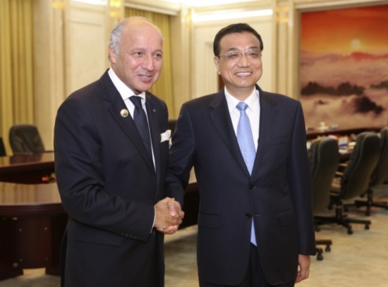 李克強(qiáng)總理會(huì)見(jiàn)法國(guó)外長(zhǎng)法比尤斯時(shí)說(shuō):"希望把中法第三方合作和核能合作做成'南北合作'的示范項(xiàng)目,做成推動(dòng)世界經(jīng)濟(jì)向復(fù)蘇方向前行的引導(dǎo)性項(xiàng)目。"