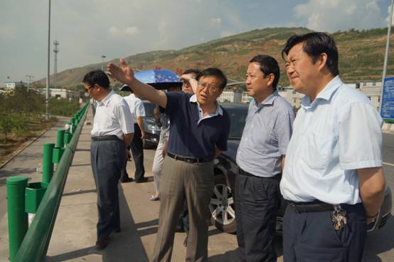 圖一:集團(tuán)王總向毛占彪主任(左二)一行介紹青海物產(chǎn)北川工業(yè)物流園百萬噸倉儲(chǔ)項(xiàng)目建成后的運(yùn)營情況